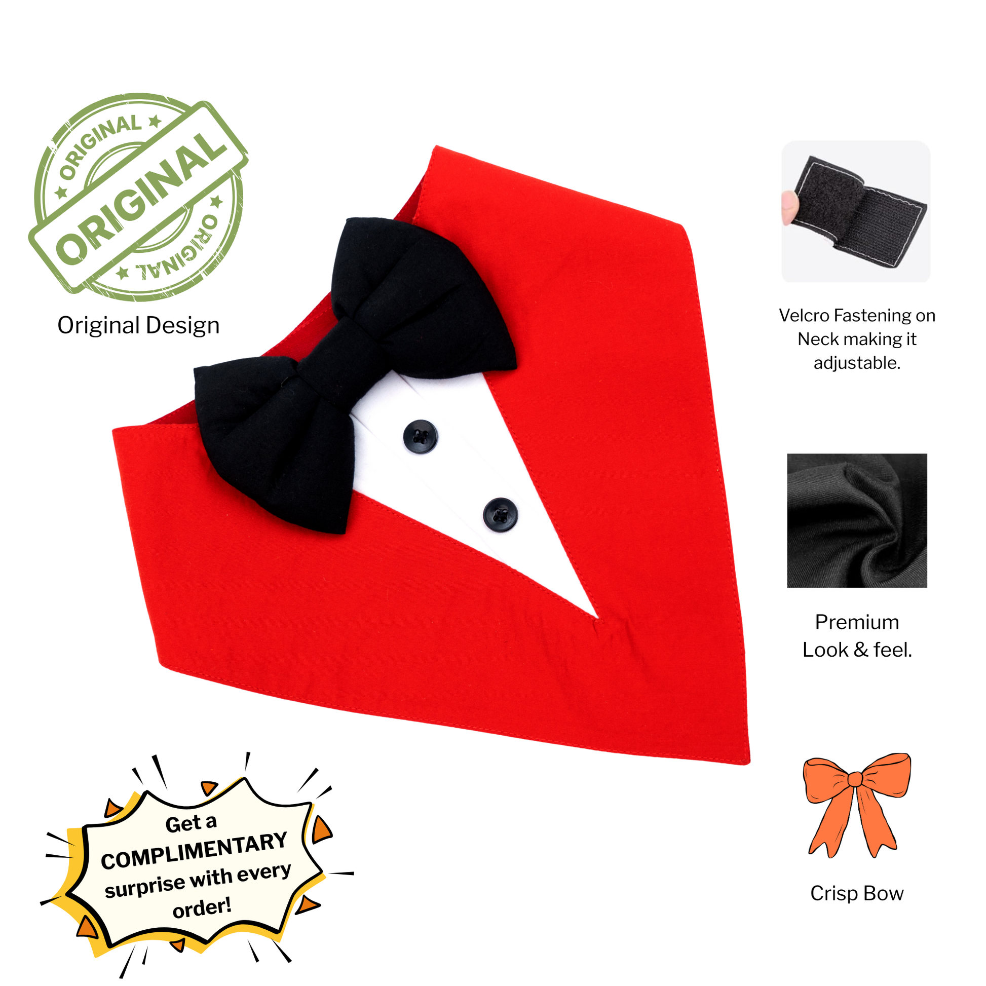 Get your furry friend ready for any occasion with our dashing Tuxedo Bandana from Dog-O-Bow! 🐾🎩 Perfect for weddings, parties, or just a sophisticated stroll around the block, this stylish accessory adds flair to any pup's ensemble. Crafted with premium materials for comfort and durability, your canine companion will steal the show in this classy attire. Get ready to turn heads and wag tails with Dog-O-Bow's Tuxedo Bandana!